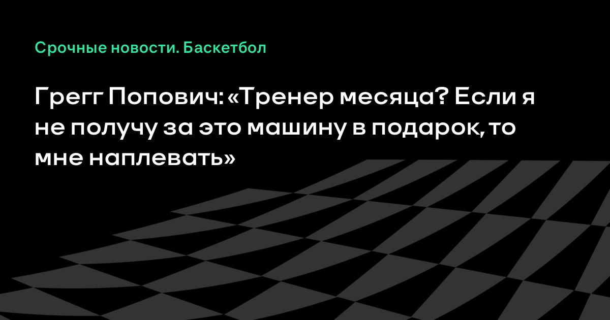 Грегг Попович: «Тренер месяца? Если я не получу за это машину в подарок, то мне наплевать»