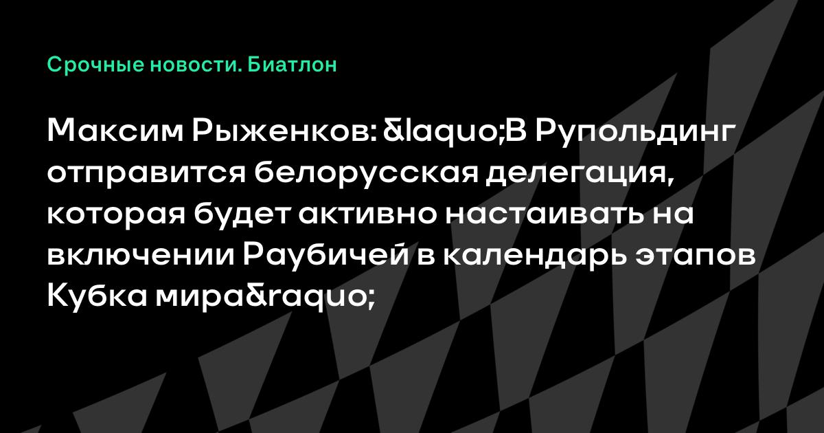 Белорусская сторона также готова предоставить свою биатлонную базу в качестве резервной, если возникнет ситуация как в Оберхофе, Раубичи могут оперативно откликнуться и подставить плечо Международному союзу биатлонистов при проведении этапов Кубков мира. Да и сегодня мы могли бы запросто это сделать, если бы Международный союз биатлонистов готов был перенести этап из Оберхофа к нам. Провели бы соревнования на самом высоком уровне», – рассказал Рыженков.