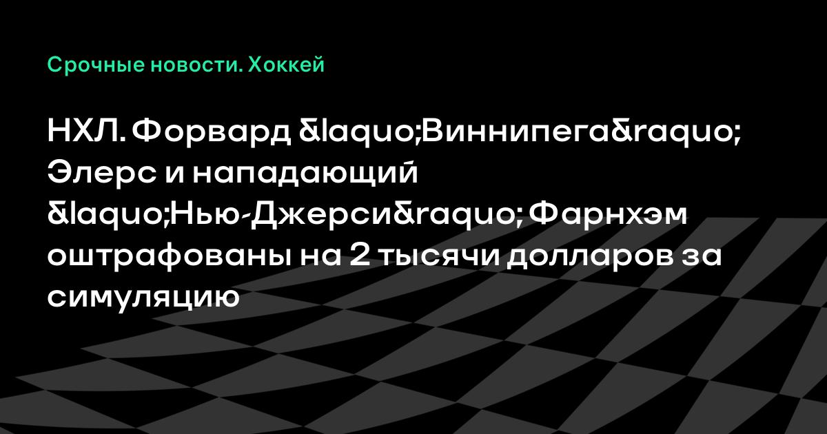 НХЛ. Форвард «Виннипега» Элерс и нападающий «Нью-Джерси» Фарнхэм оштрафованы на 2 тысячи долларов за симуляцию