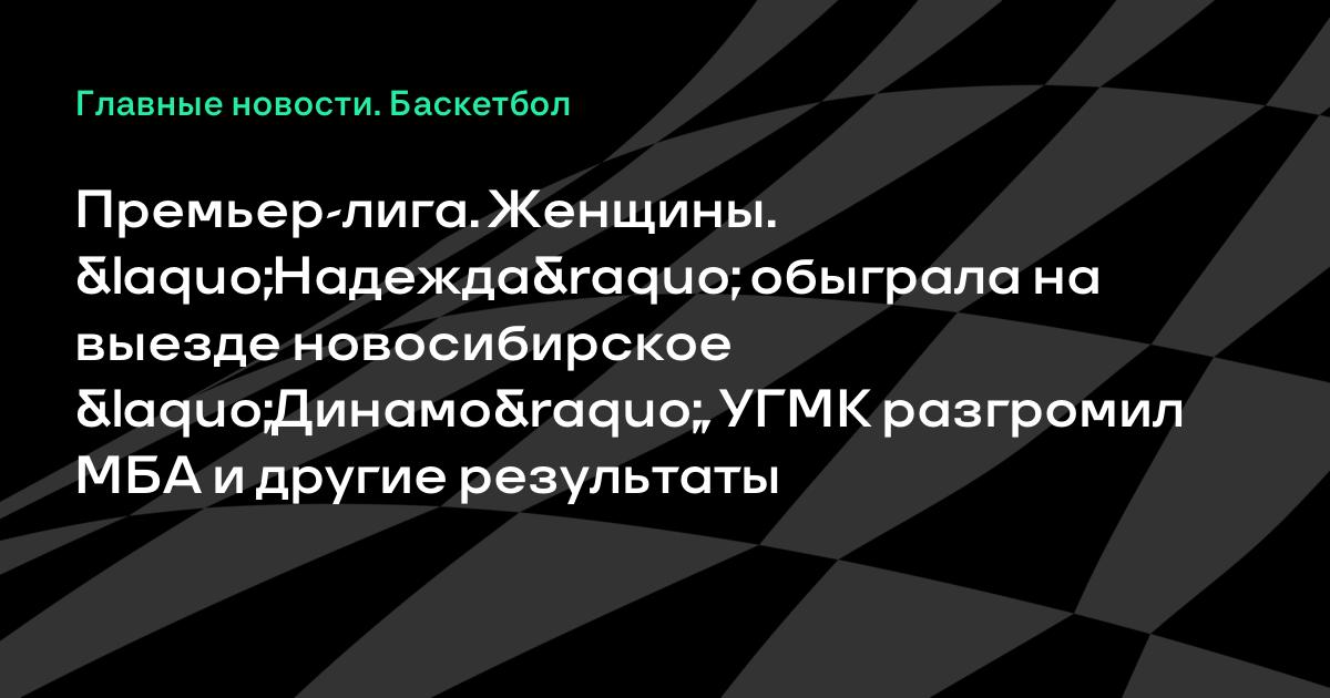 Премьер-лига. Женщины. «Надежда» обыграла на выезде новосибирское «Динамо», УГМК разгромил МБА и другие результаты