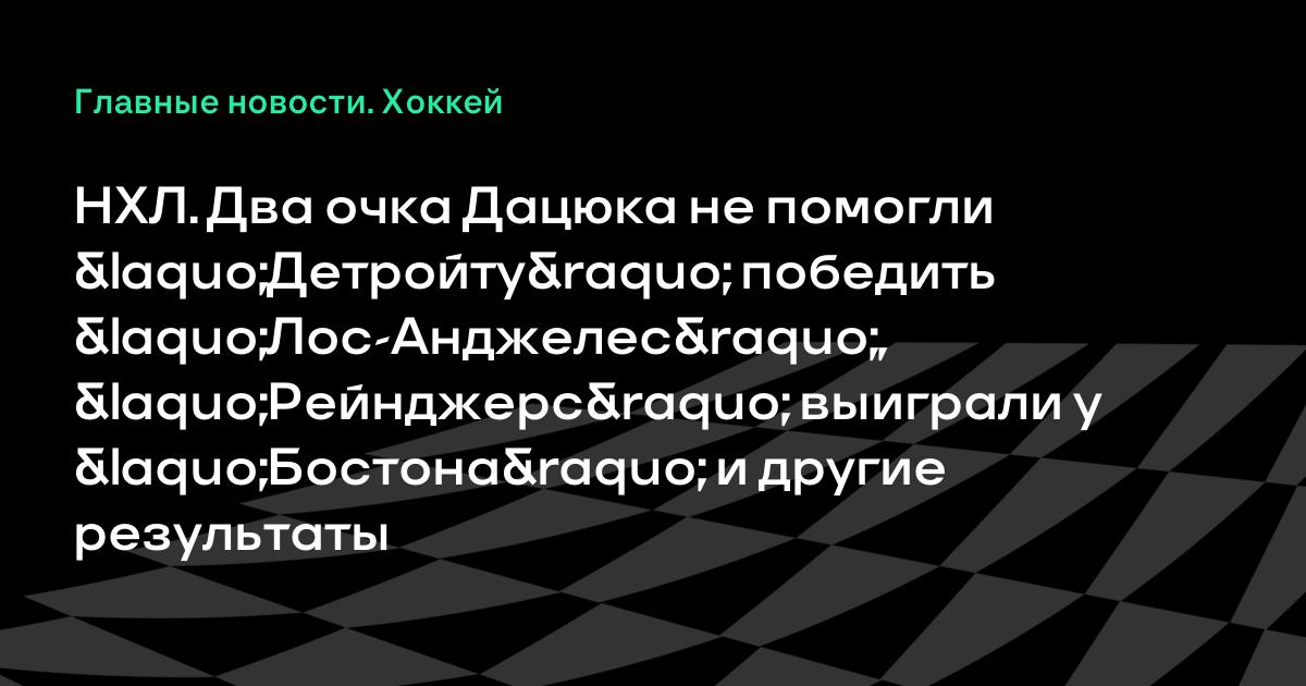 НХЛ. Два очка Дацюка не помогли «Детройту» победить «Лос-Анджелес», «Рейнджерс» выиграли у «Бостона» и другие результаты