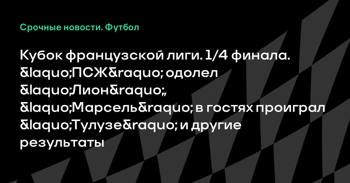 Кубок французской лиги. 1/4 финала. «ПСЖ» одолел «Лион», «Марсель» в гостях проиграл «Тулузе» и другие результаты