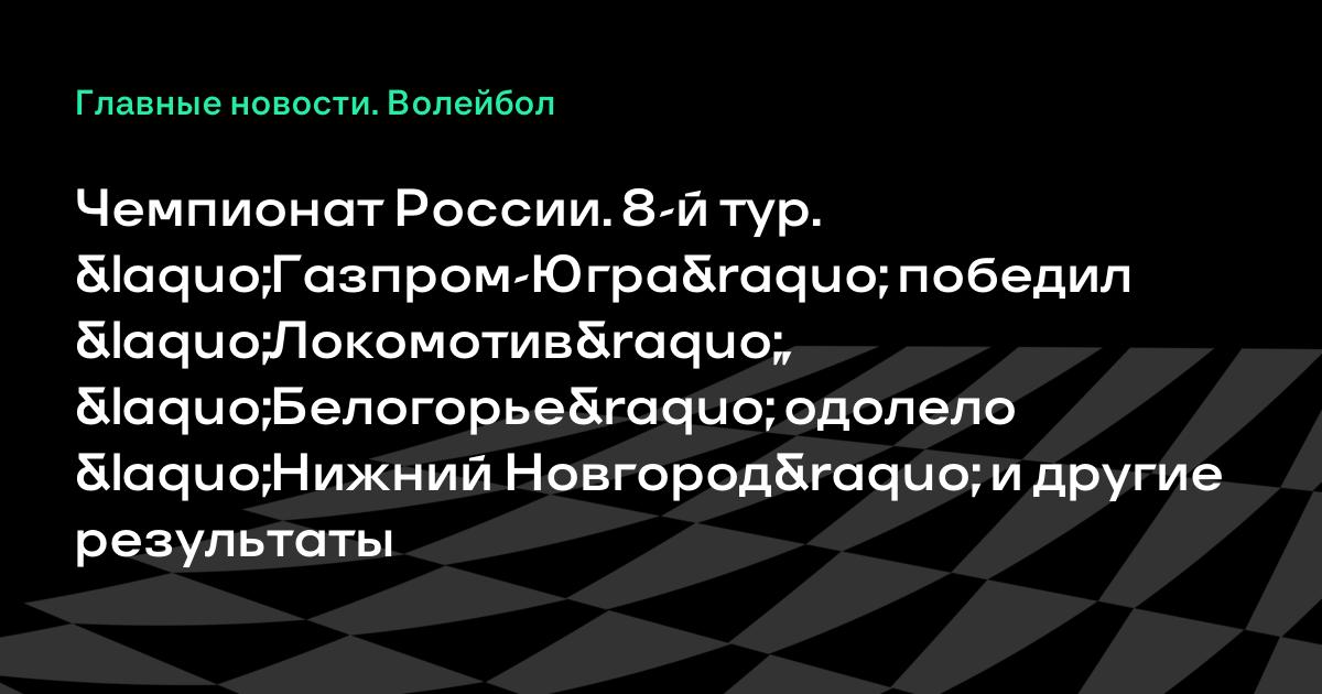 Чемпионат России. 8-й тур. «Газпром-Югра» победил «Локомотив», «Белогорье» одолело «Нижний Новгород» и другие результаты