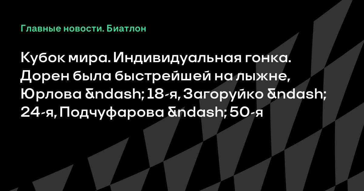 Кубок мира. Индивидуальная гонка. Дорен была быстрейшей на лыжне, Юрлова – 18-я, Загоруйко – 24-я, Подчуфарова – 50-я