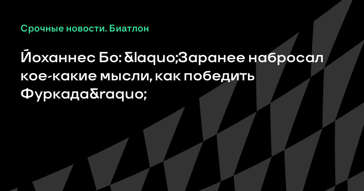 «Сегодня мне пришлось тягаться с Мартеном Фуркадом, это непросто. Но я провел гонку очень неплохо, у меня был победный план, я набросал кое-какие мысли», – сказал Бо-младший.
