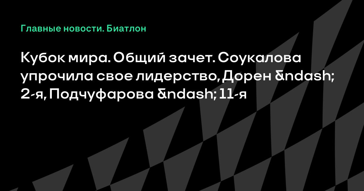 Кубок мира. Общий зачет. Соукалова упрочила свое лидерство, Дорен – 2-я, Подчуфарова – 11-я