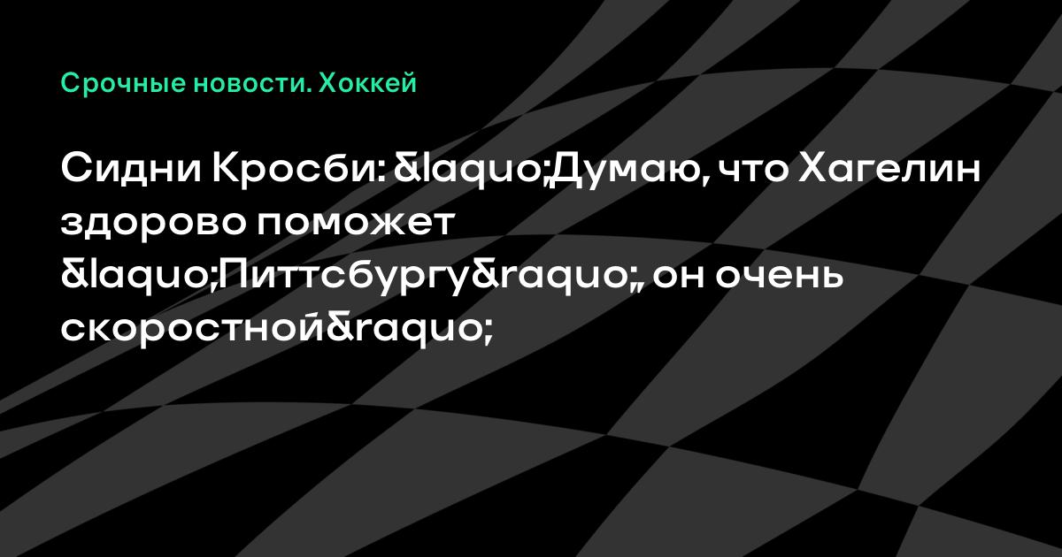 Сидни Кросби: «Думаю, что Хагелин здорово поможет «Питтсбургу», он очень скоростной»