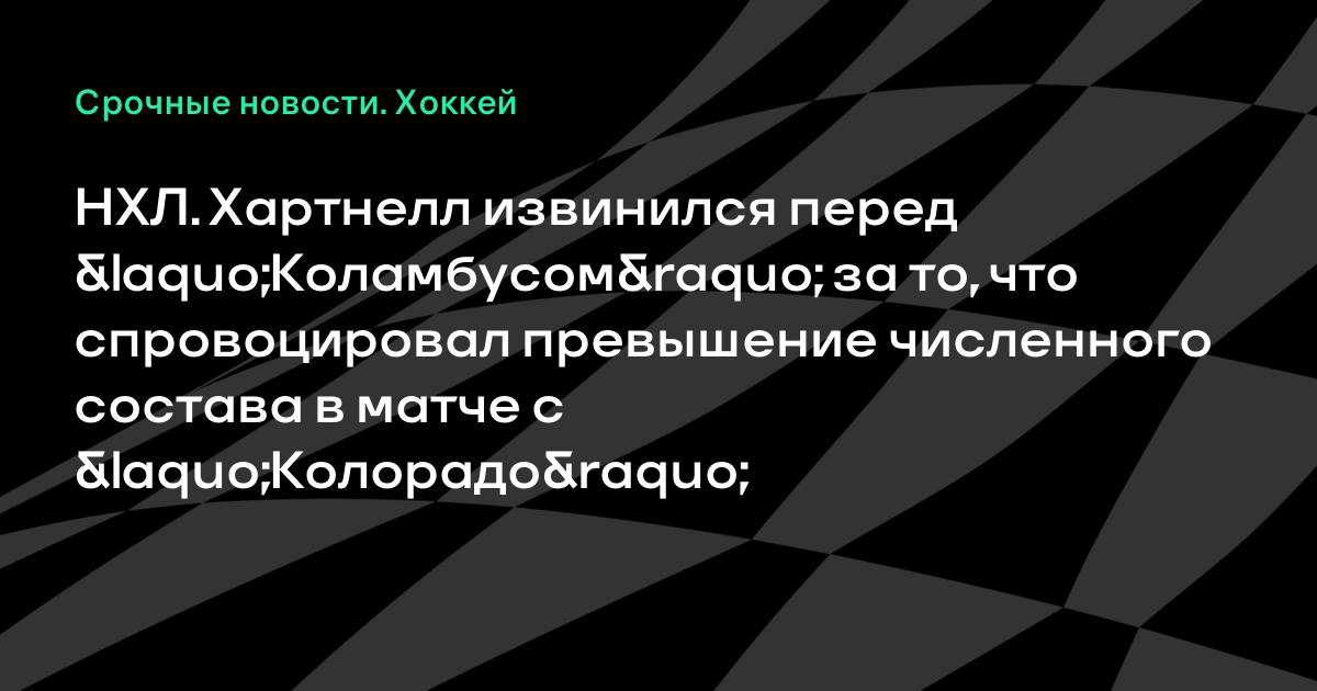 НХЛ. Хартнелл извинился перед «Коламбусом» за то, что спровоцировал превышение численного состава в матче с «Колорадо»