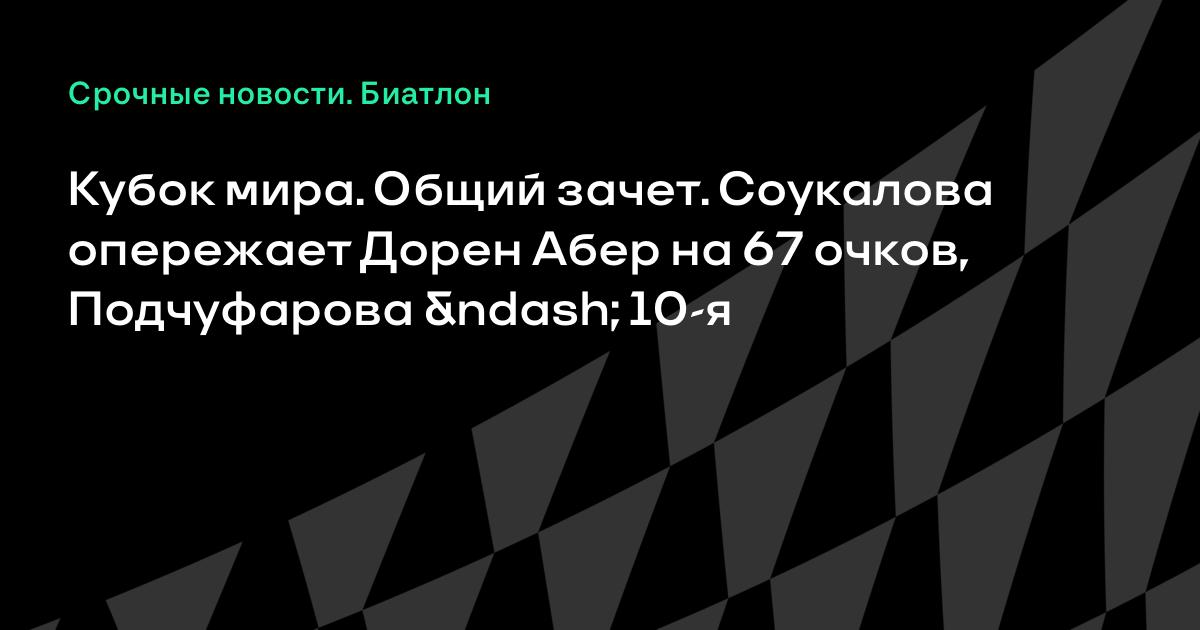 Кубок мира. Общий зачет. Соукалова опережает Дорен Абер на 67 очков, Подчуфарова – 10-я