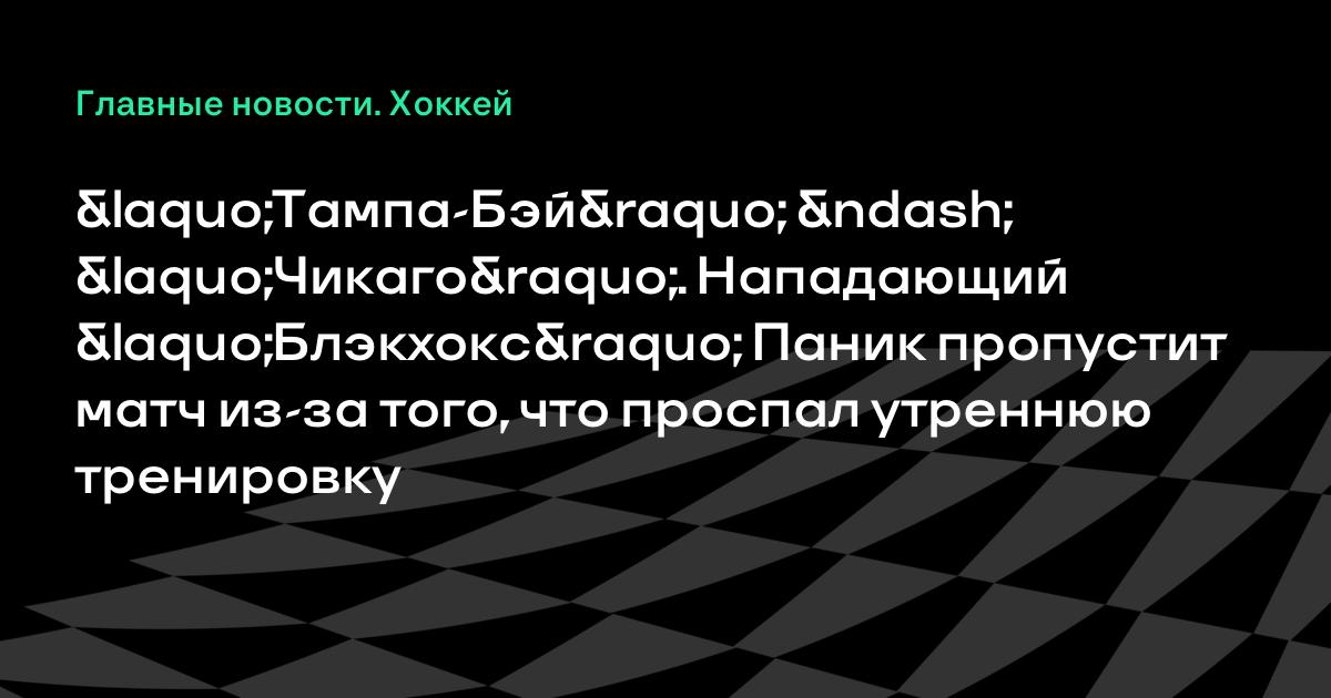 «Тампа-Бэй» – «Чикаго». Нападающий «Блэкхокс» Паник пропустит матч из-за того, что проспал утреннюю тренировку