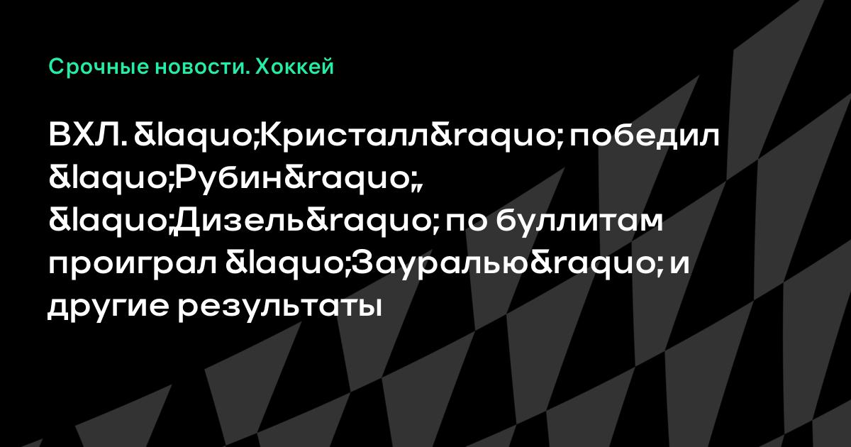 ВХЛ. «Кристалл» победил «Рубин», «Дизель» по буллитам проиграл «Зауралью» и другие результаты