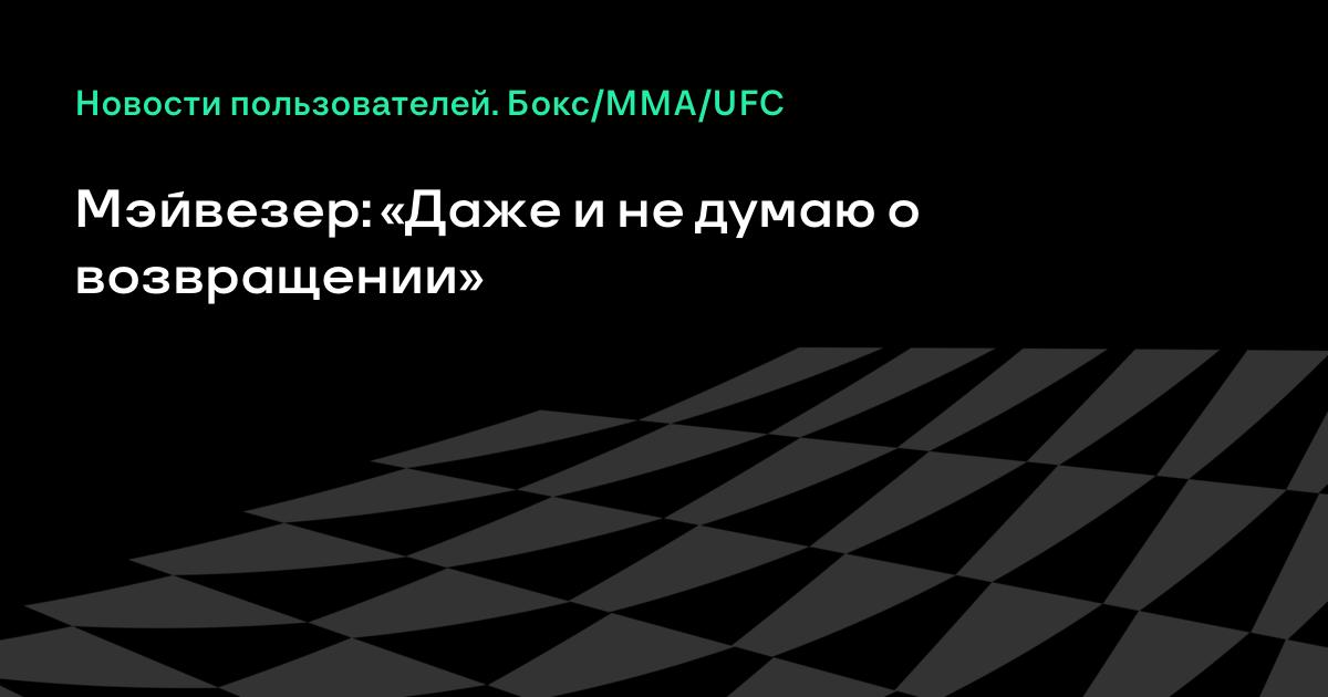 «На сегодняшний момент я не думаю о своей карьере. Я думаю о карьере боксеров, которые выступают под знаменами Mayweather Promotions и стараюсь им помочь, — заявил Флойд Мэйуэзер, который в прошлом году заявил о том, что завершает карьеру. – Я не думаю о том, с кем бы я еще мог подраться, или ради кого я мог бы вернуться. Я хочу вернуться в спорт, но по-другому. Я дрался всю свою жизнь, а как профессионал я выступал на самом высоком уровне 20 лет, так что пора мне уже дать дорогу молодым. До конца жизни мои заработки будут составлять семизначные цифры ежемесячно. Я сделал весьма мудрые вложения и хорошо себя чувствую. Мои дети ходят в школу и скоро будут ходить в колледж, и это самое важное для меня сейчас. Мне очень повезло. Намного больше, чем я когда-либо мог мечтать».