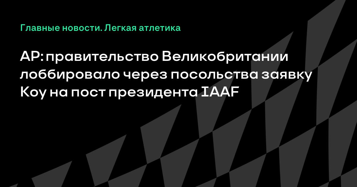 AP: правительство Великобритании лоббировало через посольства заявку Коу на пост президента IAAF