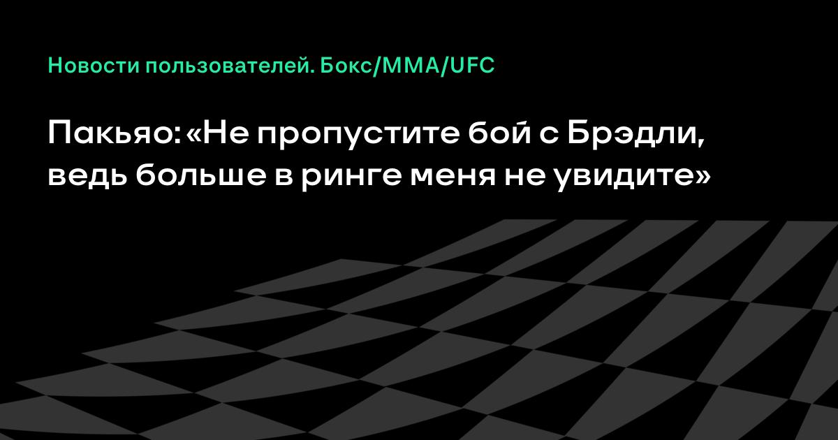 Пакьяо: «Не пропустите бой с Брэдли, ведь больше в ринге меня не увидите»