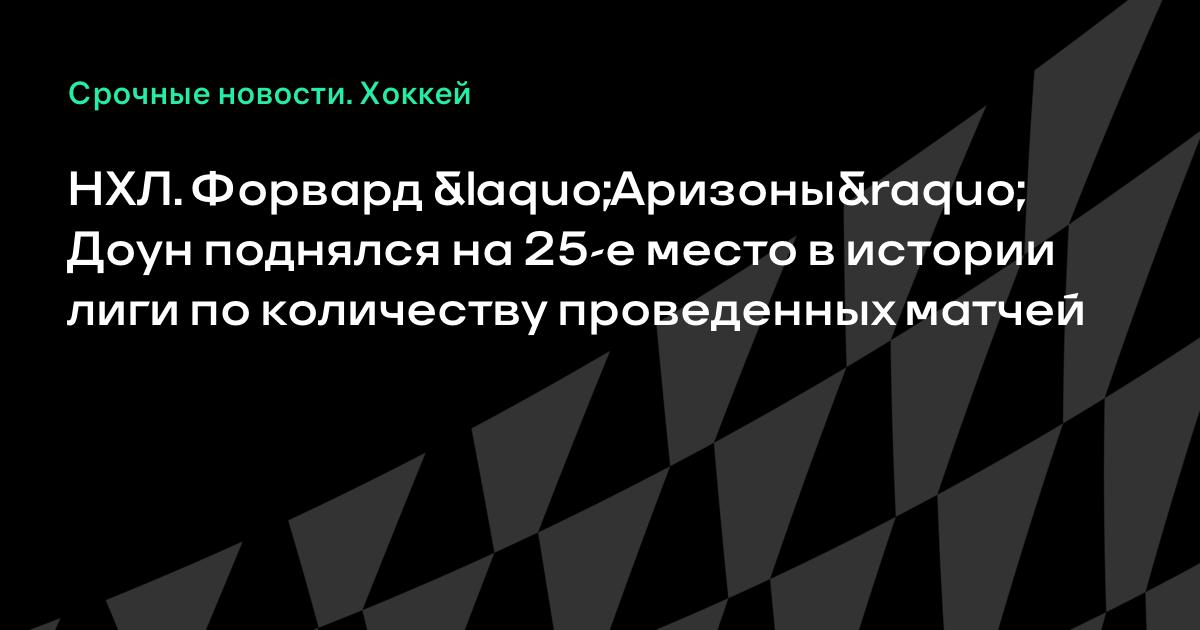 НХЛ. Форвард «Аризоны» Доун поднялся на 25-е место в истории лиги по количеству проведенных матчей