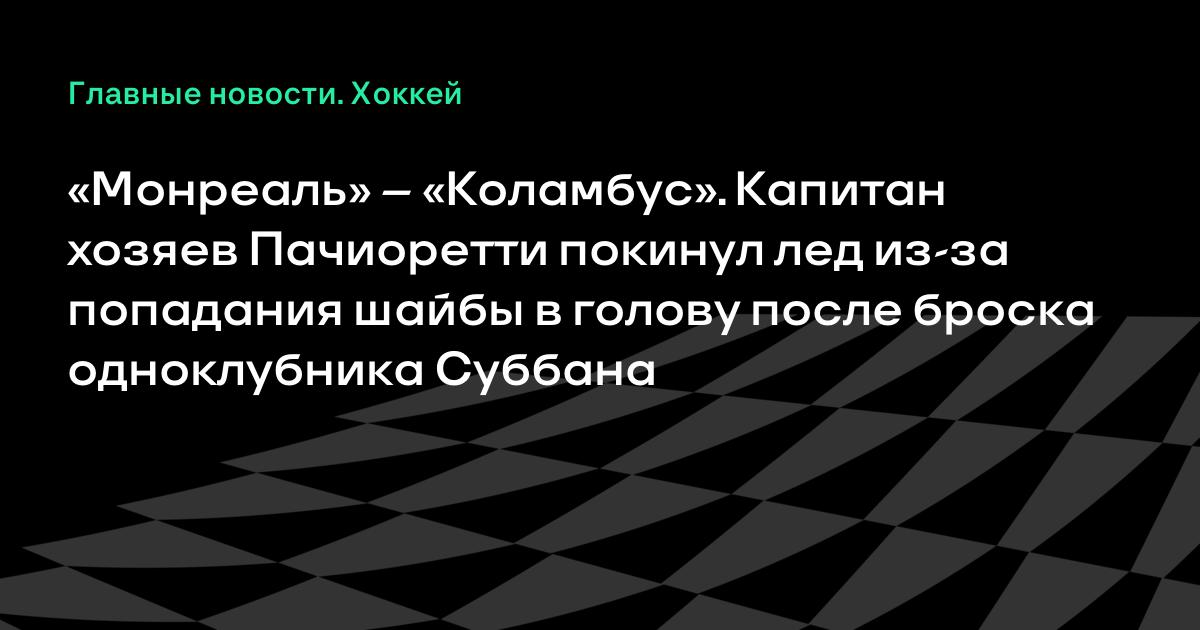 «Монреаль» – «Коламбус». Капитан хозяев Пачиоретти покинул лед из-за попадания шайбы в голову после броска одноклубника Суббана