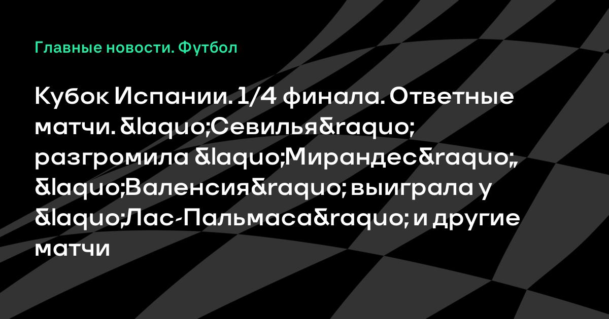 Кубок Испании. 1/4 финала. Ответные матчи. «Севилья» разгромила «Мирандес», «Валенсия» выиграла у «Лас-Пальмаса» и другие матчи