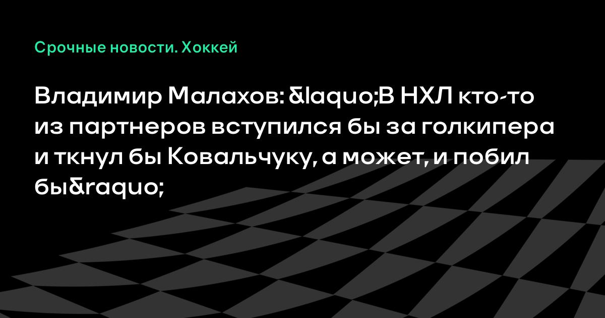 Владимир Малахов: «В НХЛ кто-то из партнеров вступился бы за голкипера и ткнул бы Ковальчуку, а может, и побил бы»