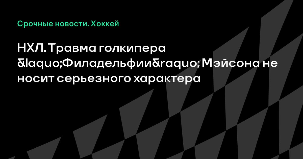 НХЛ. Травма голкипера «Филадельфии» Мэйсона не носит серьезного характера