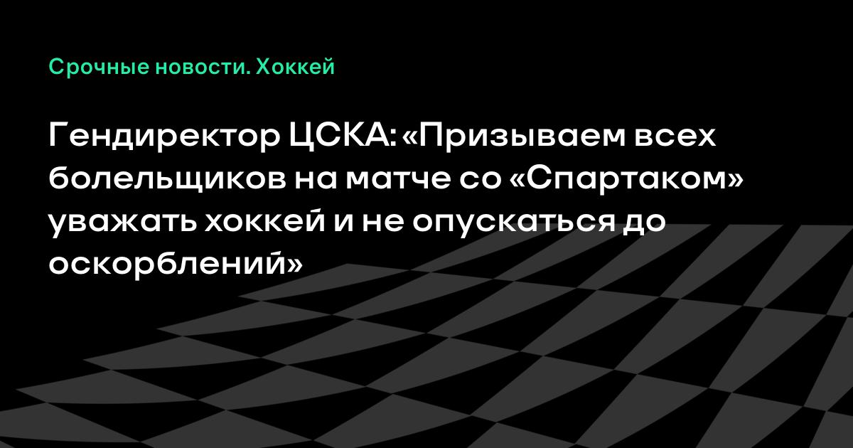 Гендиректор ЦСКА: «Призываем всех болельщиков на матче со «Спартаком» уважать хоккей и не опускаться до оскорблений»