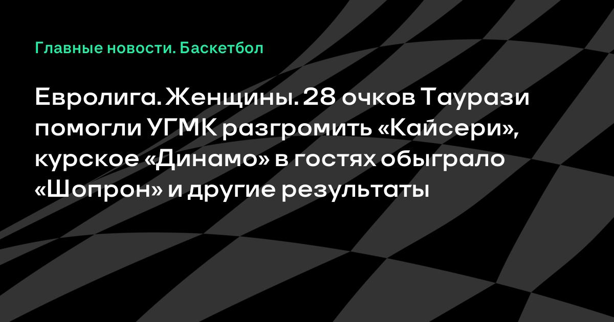 Евролига. Женщины. 28 очков Таурази помогли УГМК разгромить «Кайсери», курское «Динамо» в гостях обыграло «Шопрон» и другие результаты