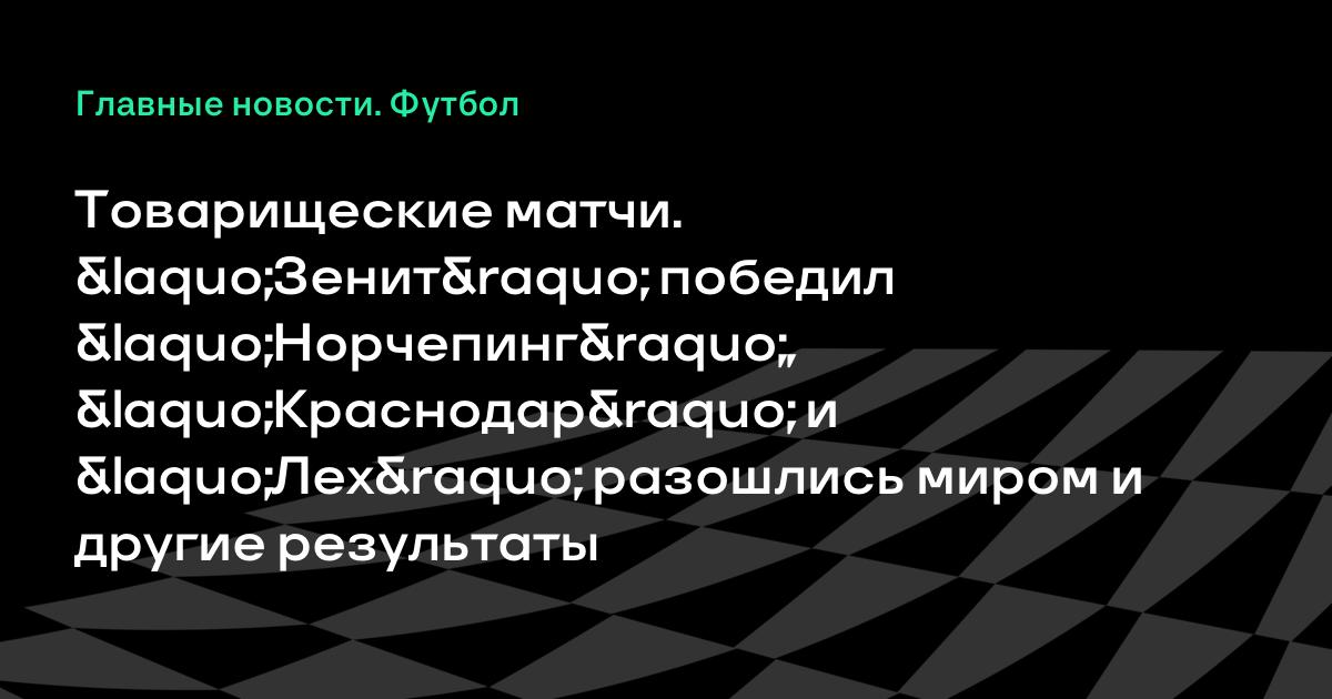 Товарищеские матчи. «Зенит» победил «Норчепинг», «Краснодар» и «Лех» разошлись миром и другие результаты