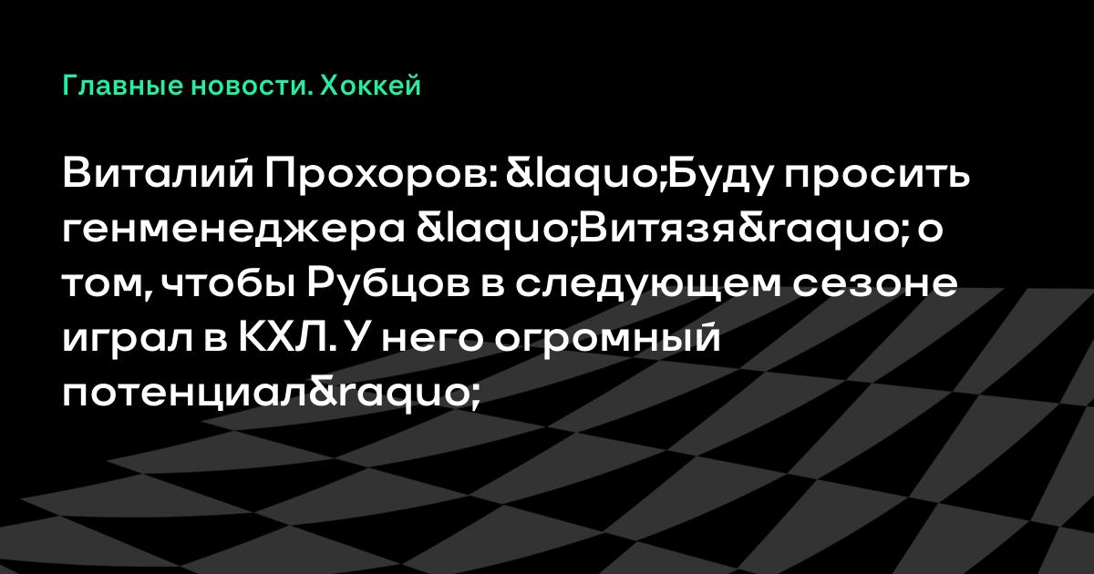 Виталий Прохоров: «Буду просить генменеджера «Витязя» о том, чтобы Рубцов в следующем сезоне играл в КХЛ. У него огромный потенциал»