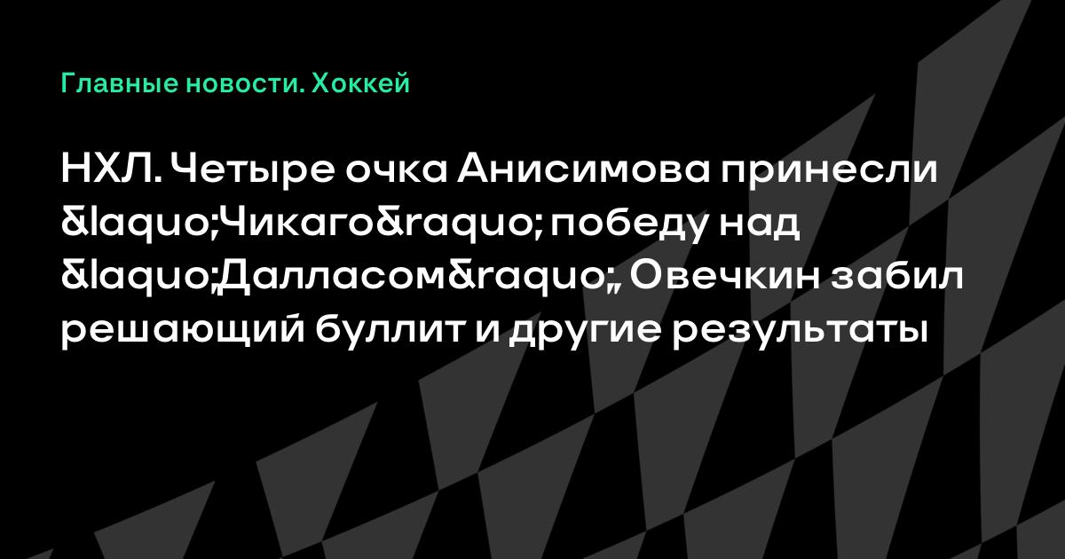 НХЛ. Четыре очка Анисимова принесли «Чикаго» победу над «Далласом», Овечкин забил решающий буллит и другие результаты