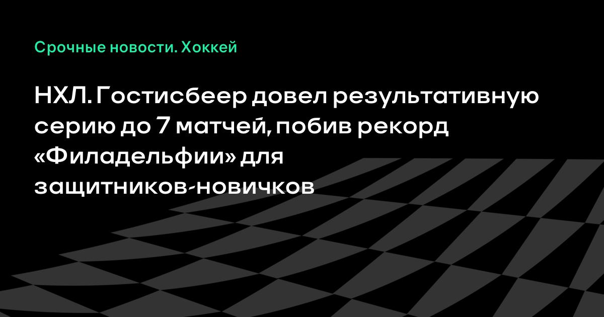 НХЛ. Гостисбеер довел результативную серию до 7 матчей, побив рекорд «Филадельфии» для защитников-новичков
