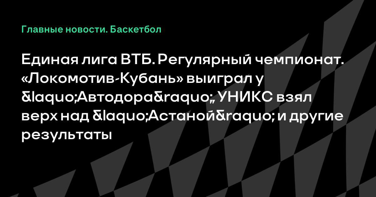 Единая лига ВТБ. Регулярный чемпионат. «Локомотив-Кубань» выиграл у «Автодора», УНИКС взял верх над «Астаной» и другие результаты