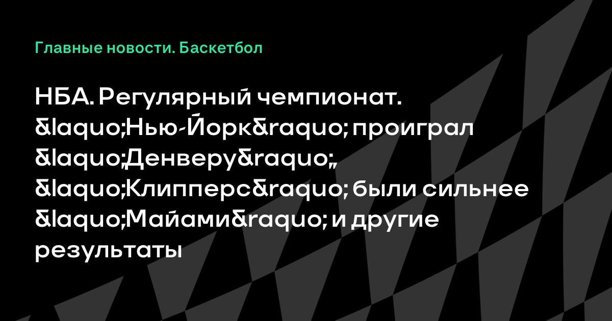 НБА. Регулярный чемпионат. «Нью-Йорк» проиграл «Денверу», «Клипперс» были сильнее «Майами» и другие результаты