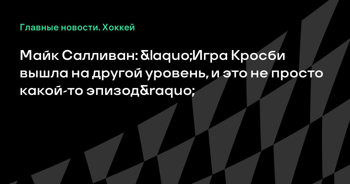 Майк Салливан: «Игра Кросби вышла на другой уровень, и это не просто какой-то эпизод»