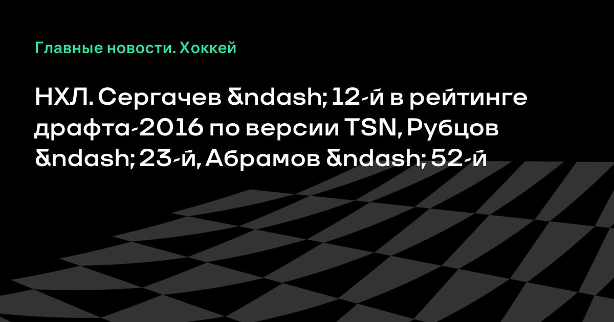 НХЛ. Сергачев – 12-й в рейтинге драфта-2016 по версии TSN, Рубцов – 23-й, Абрамов – 52-й