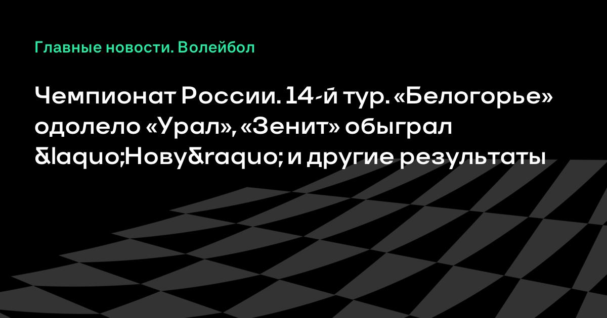 Сегодня были сыграны матчи 14-го тура мужского чемпионата России по волейболу. «Белогорье» одолело «Урал» (3-2), казанский «Зенит» обыграл «Нову» (3-0).