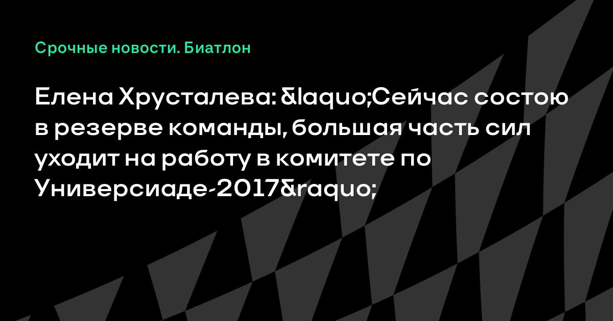 Мне также необходимо работать в комитете по Универсиаде-2017, куда направлена большая часть моих сил. Но в любом случае расслабляться не стоит. В спорте случается всякое. Например, на прошлом чемпионате мира Галина Вишневская подвернула ногу за три дня до старта и просто уехала домой, а заменить ее было некем», – сказала Хрусталева.