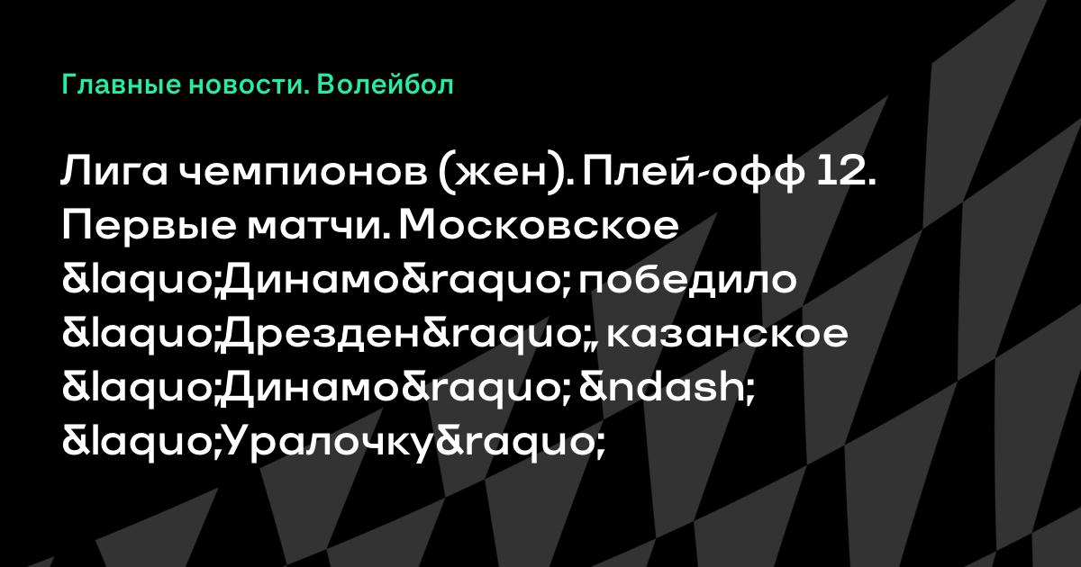 Сегодня начались матчи плей-офф двенадцати женской Лиги чемпионов по волейболу. Московское «Динамо» победило немецкий «Дрезден» (3-1), казанское «Динамо» – «Уралочку» (3-1).