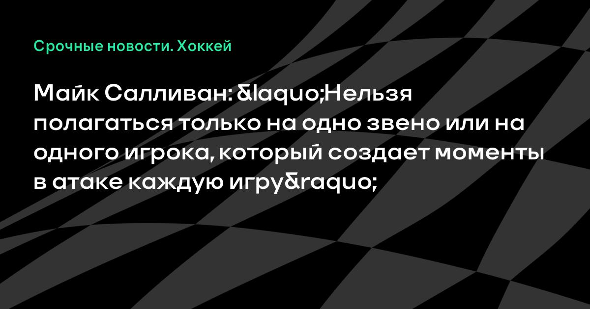 Майк Салливан: «Нельзя полагаться только на одно звено или на одного игрока, который создает моменты в атаке каждую игру»