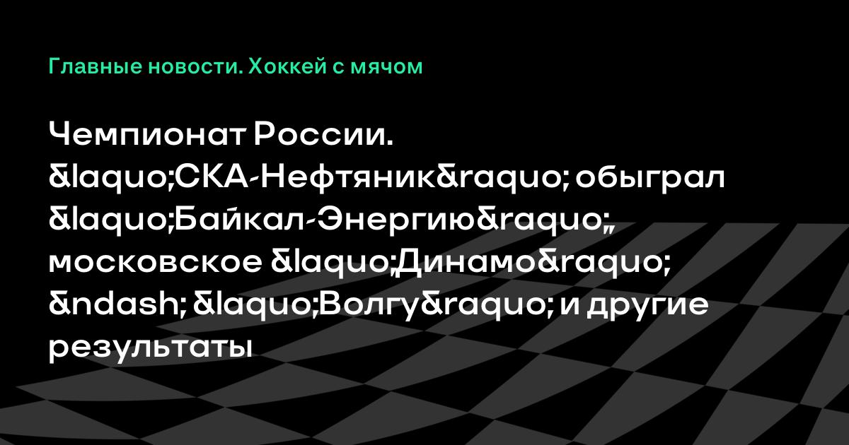 Чемпионат России. «СКА-Нефтяник» обыграл «Байкал-Энергию», московское «Динамо» – «Волгу» и другие результаты