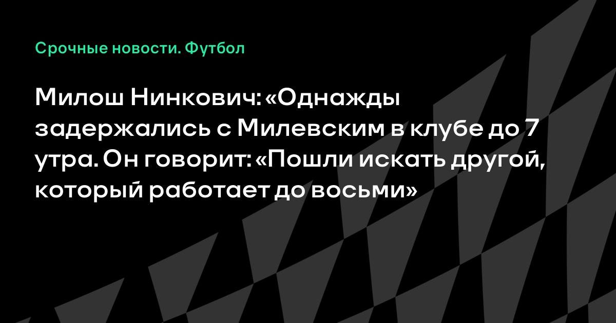 Милош Нинкович: «Однажды задержались с Милевским в клубе до 7 утра. Он говорит: «Пошли искать другой, который работает до восьми»