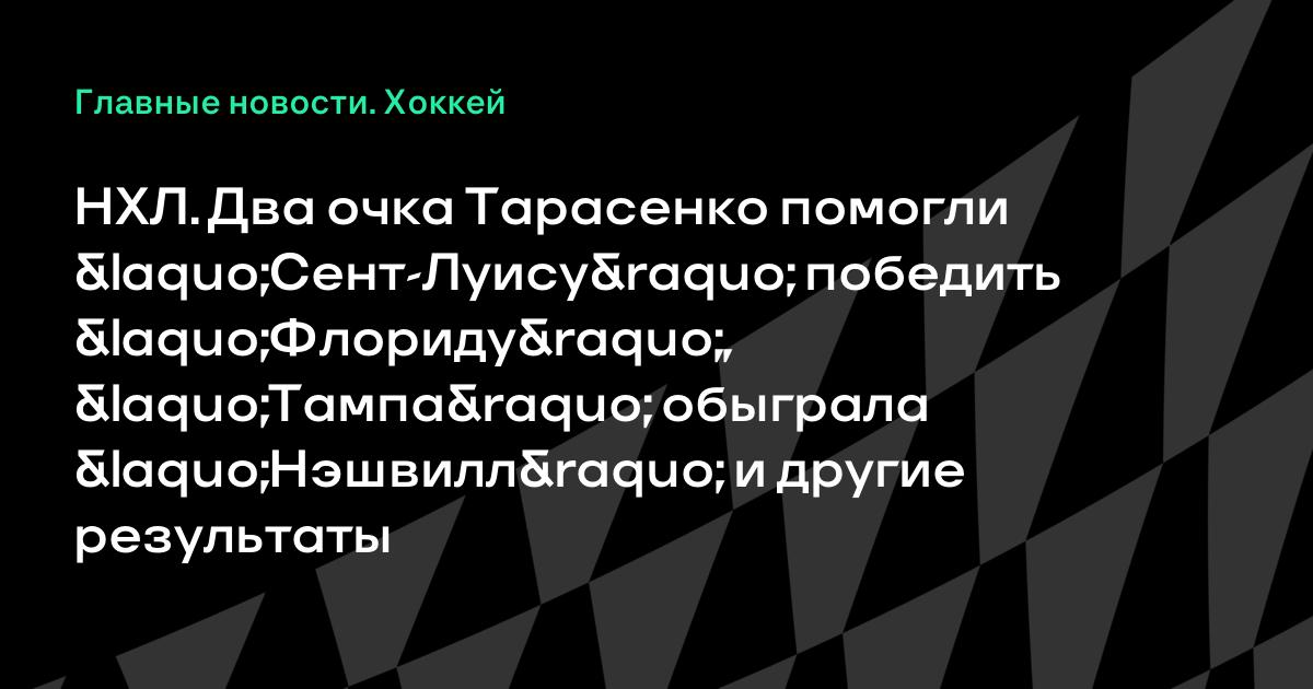 НХЛ. Два очка Тарасенко помогли «Сент-Луису» победить «Флориду», «Тампа» обыграла «Нэшвилл» и другие результаты