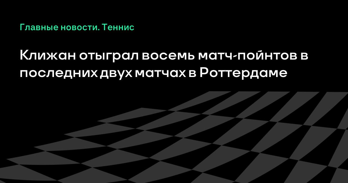 Клижан отыграл восемь матч-пойнтов в последних двух матчах в Роттердаме