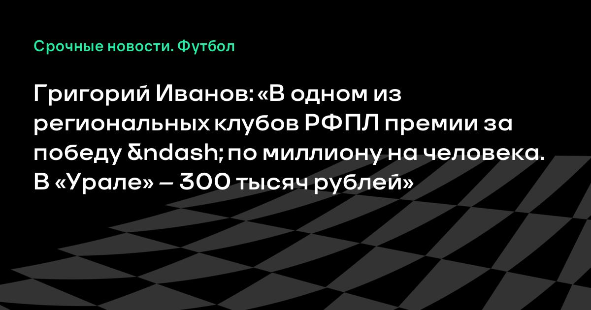 Григорий Иванов: «В одном из региональных клубов РФПЛ премии за победу – по миллиону на человека. В «Урале» – 300 тысяч рублей»