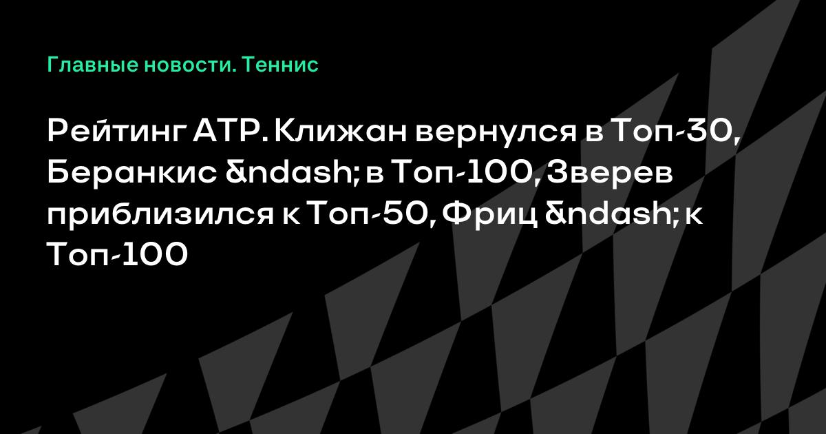 Рейтинг ATP. Клижан вернулся в Топ-30, Беранкис – в Топ-100, Зверев приблизился к Топ-50, Фриц – к Топ-100