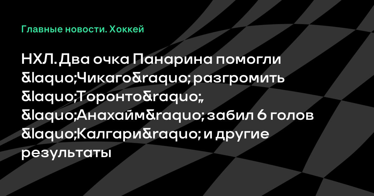 НХЛ. Два очка Панарина помогли «Чикаго» разгромить «Торонто», «Анахайм» забил 6 голов «Калгари» и другие результаты