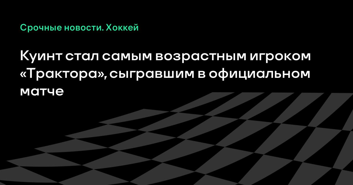 По этому показателю Куинт опережает экс-игроков «Трактора» Андрея Зуева (39 лет, 10 месяцев и 30 дней), Сергея Хрущева (39 лет, 3 месяца и 27 дней) и Андрея Баландина (39 лет, 2 месяца и 24 дня).