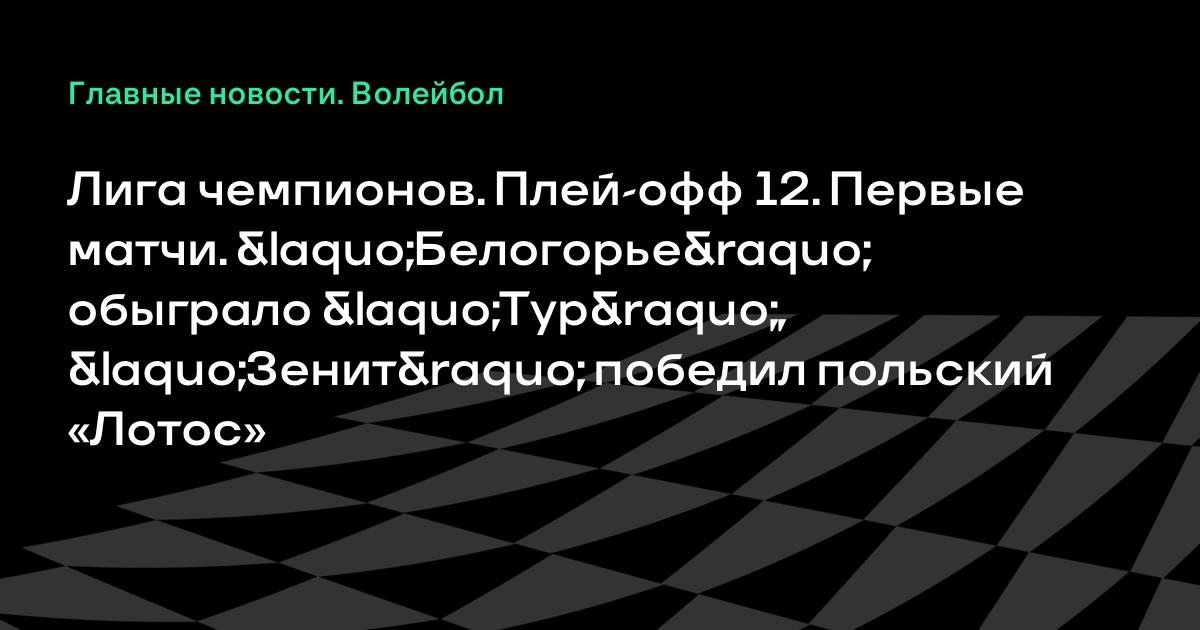 Лига чемпионов. Плей-офф 12. Первые матчи. «Белогорье» обыграло «Тур», «Зенит» победил польский «Лотос»