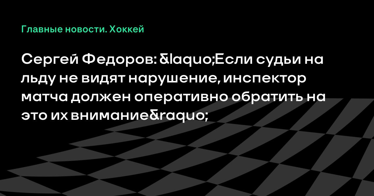 Сергей Федоров: «Если судьи на льду не видят нарушение, инспектор матча должен оперативно обратить на это их внимание»