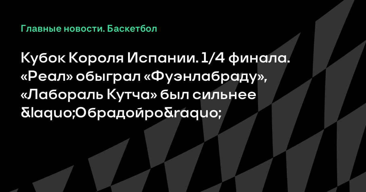 Сегодня, 19 февраля, в четвертьфинальных матчах Кубка Короля Испании «Реал» обыграл «Фуэнлабраду», «Лабораль Кутча» был сильнее «Обрадойро».