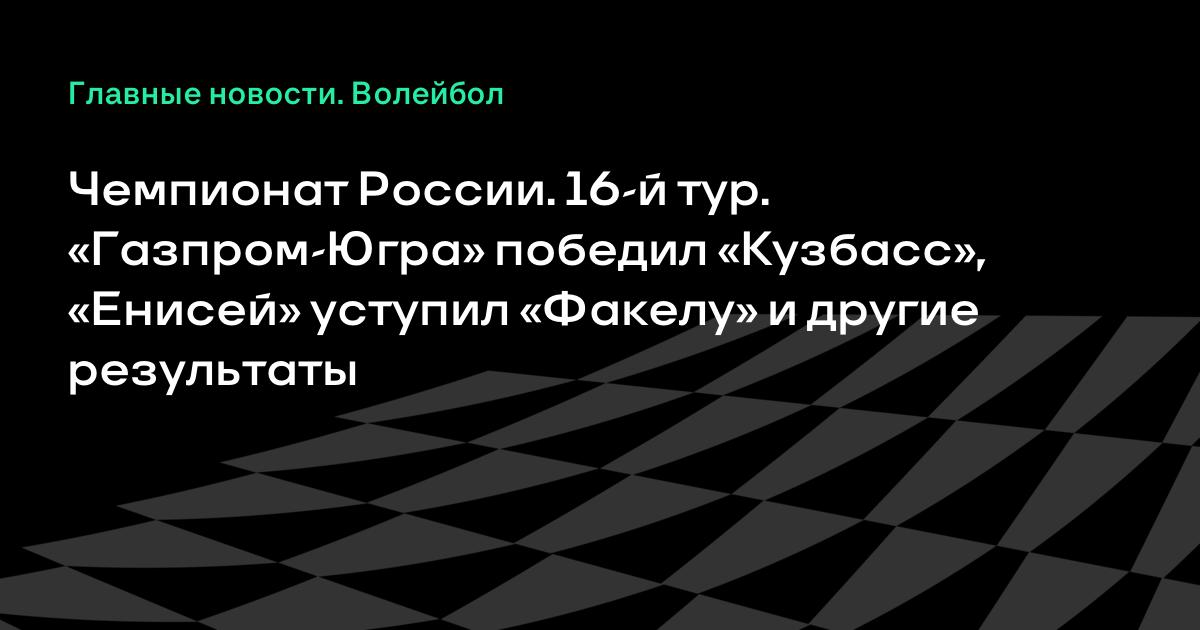 Сегодня завершился 16-й тур мужского чемпионата России по волейболу. «Газпром-Югра» победил «Кузбасс» (3-1), «Енисей» уступил «Факелу» (2-3).