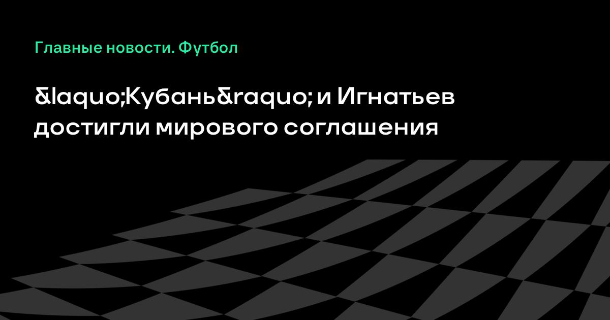 Директор Общероссийского профсоюза футболистов Александр Зотов рассказал, что полузащитник Владислав Игнатьев достиг мирового соглашения с «Кубанью».
